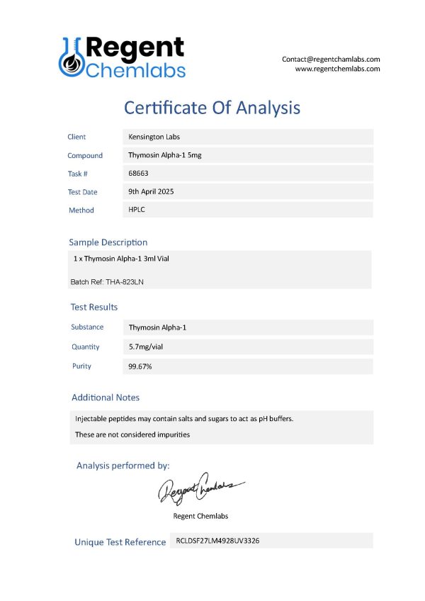 For researchers in need of high-quality Thymosin Alpha 1, Kensington Labs provides a reliable source designed for precision and innovation in scientific studies.